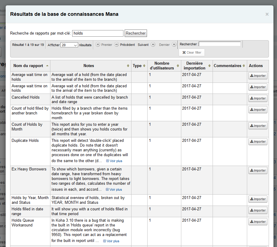 Vos informations sur vos rapports et abonnements pourrons alors être transmis à la base de connaissance Mana et d'autres bibliothèques utilisant Koha pourront les consulter.