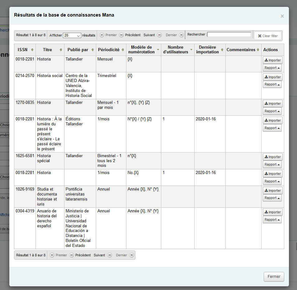 Lorsque vous cliquerez sur l'option "Afficher les résultats de Mana", une nouvelle fenêtre apparaîtra avec les résultats trouvés dans la banque.