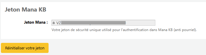 Dans le bas de la page, vous aurez alors accès à votre jeton / clé de sécurité.