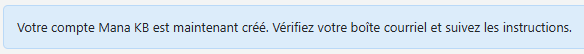 Cliquer sur le bouton [Envoyer à Mana KB]. Par la suite, un message s'affichera dans le haut de la page vous indiquant que votre compte Mana a bien été créé.