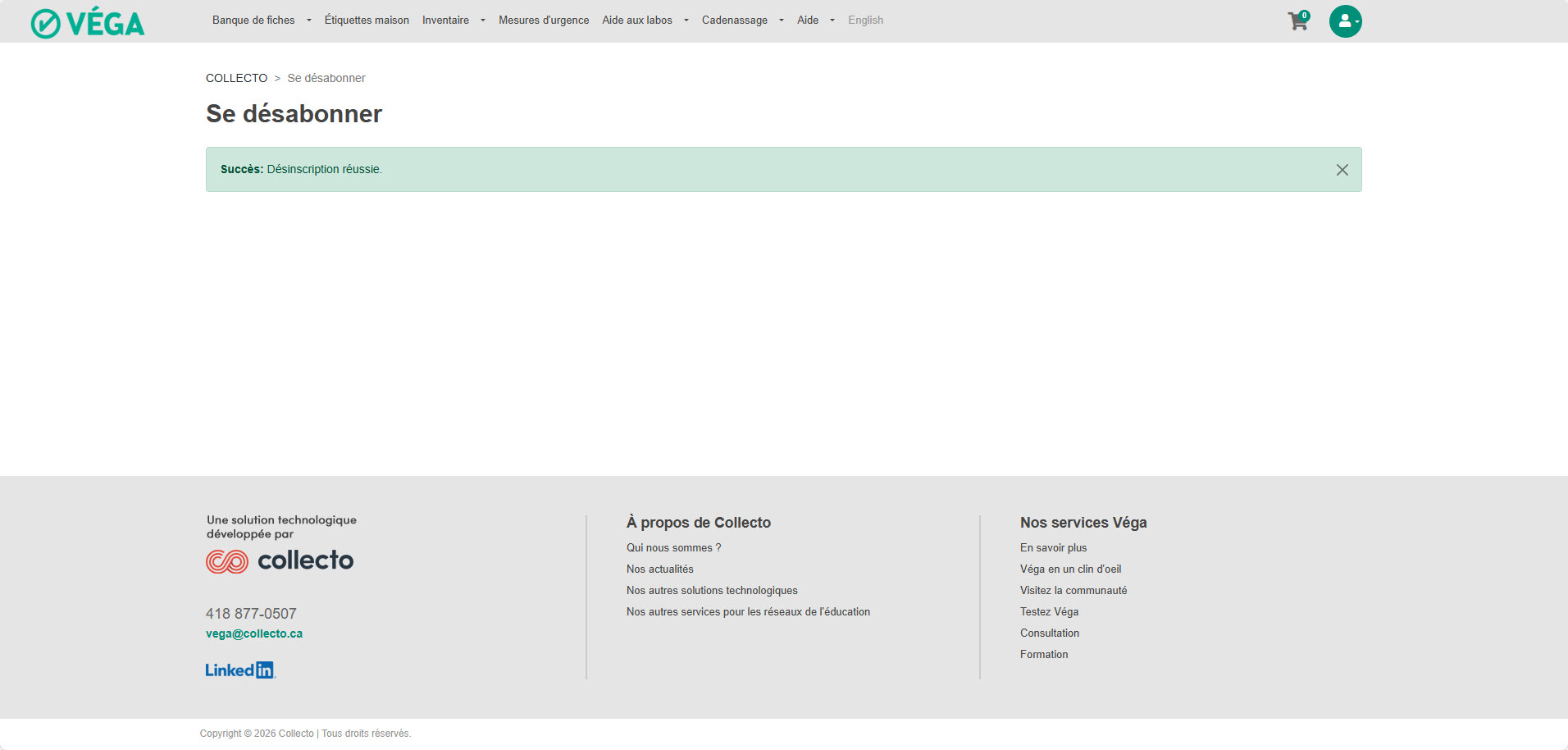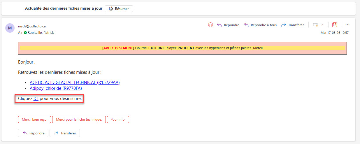 Vous serez alors désabonné de l'envoi de courriel pour la mise à jour des fiches de données de sécurité.