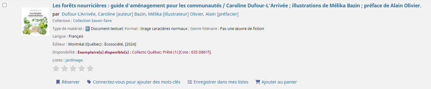 - OPACXSLTResultsDisplay : vue de la page de résultats à l'OPAC