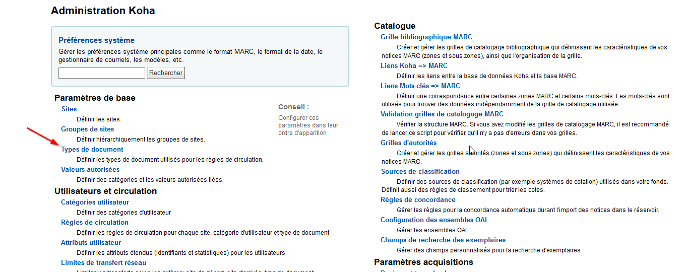 Il est possible dans Koha d’instaurer un cout de remplacement par défaut. Ainsi, s’il n’y a pas de prix de remplacement dans la notice d’exemplaires d’un de vos documents. L’usager aura des frais automatiques dans son compte. Il est possible de déterminer ces frais de remplacement par type de document (livre,DVD,bande dessinée, etc.).