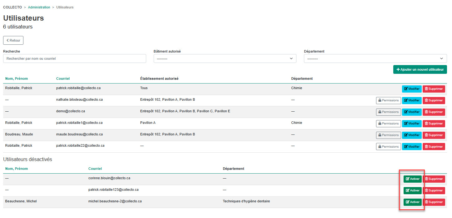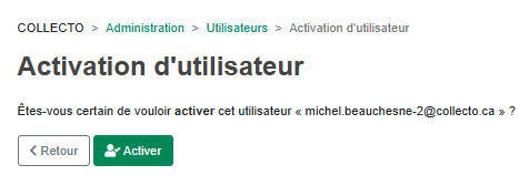 Pour le réactiver, cliquer sur l'option "Activer" dans la liste des utilisateurs désactivés.