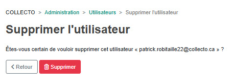 Un message de confirmation s'affichera. Cliquer sur "Supprimer" une nouvelle fois pour confirmer.