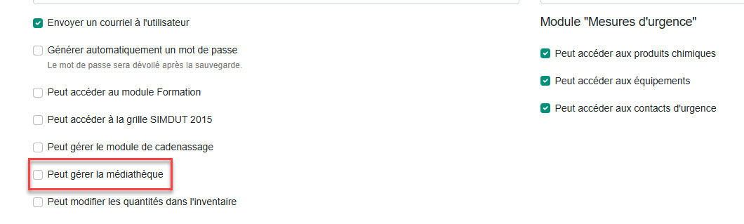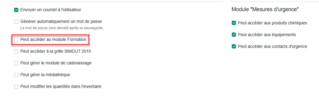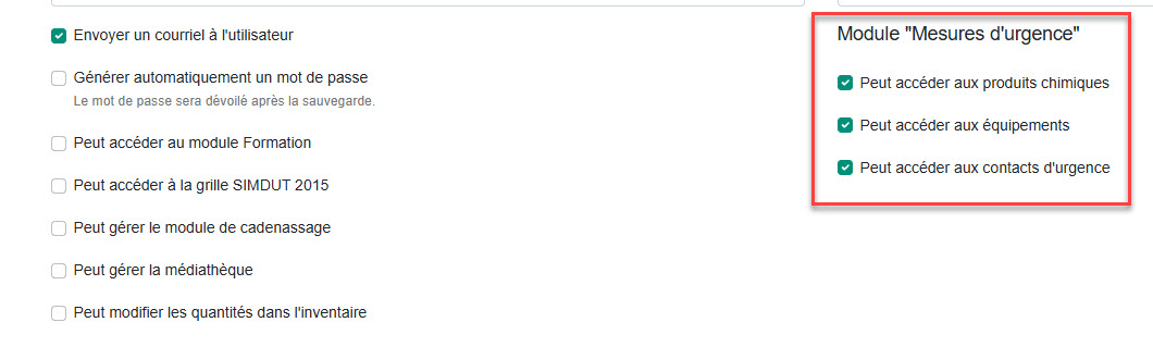 Par défaut, tous les utilisateurs ont ces trois accès activés. Vous devrez décocher les cases correspondant aux sections auxquelles certains utilisateurs ne doivent pas avoir accès.
