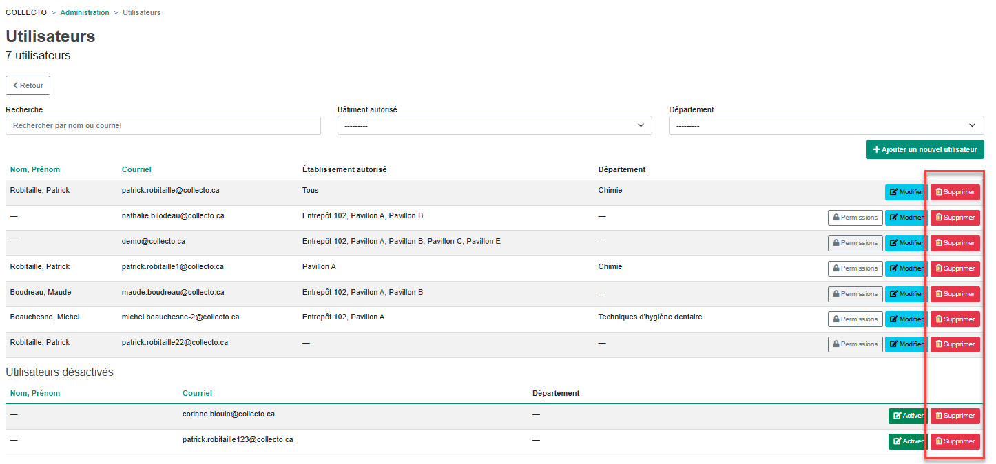 L'utilisateur sera alors déplacé dans la liste des usagers désactivés.