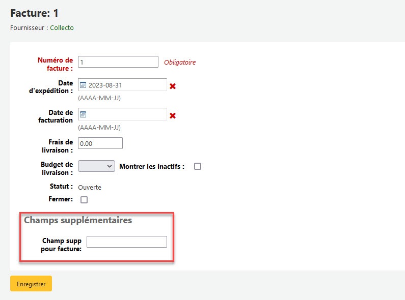 Ajouter un champ supplémentaire pour une facture dans le module acquisition