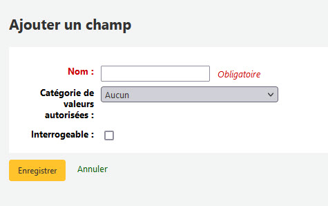 Pour ajouter un nouveau champ, vous devez cliquer sur "Créer un champ". La fenêtre suivante s'affichera.