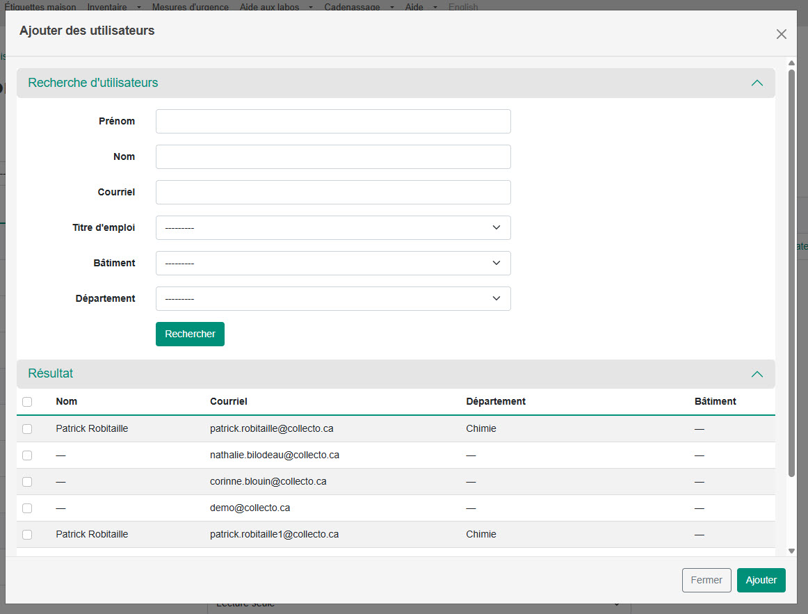 Sélectionner les usagers en cochant la case à cocher et cliquer sur "Ajouter".