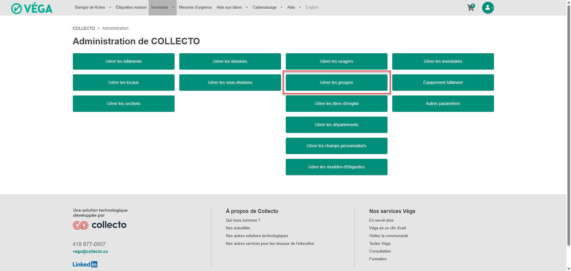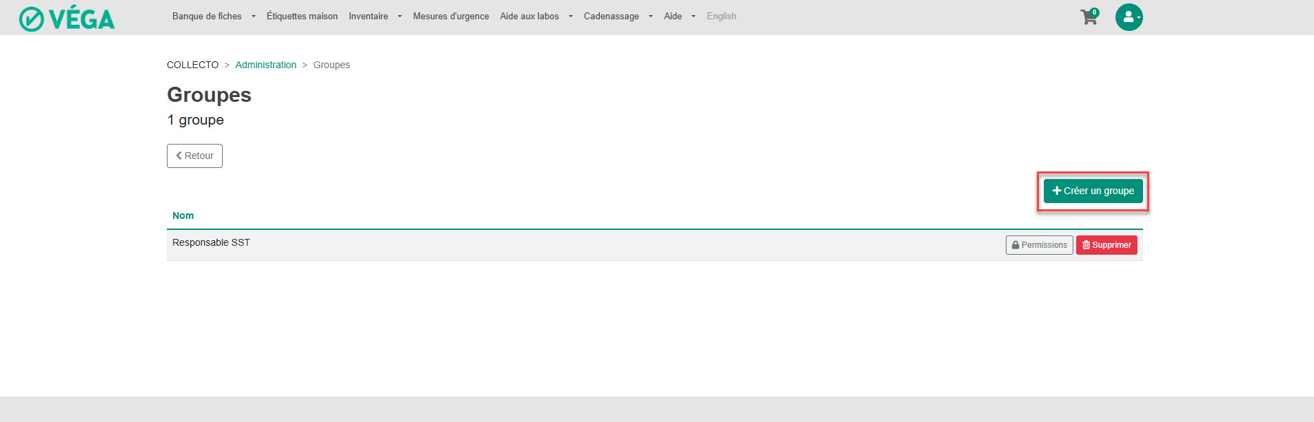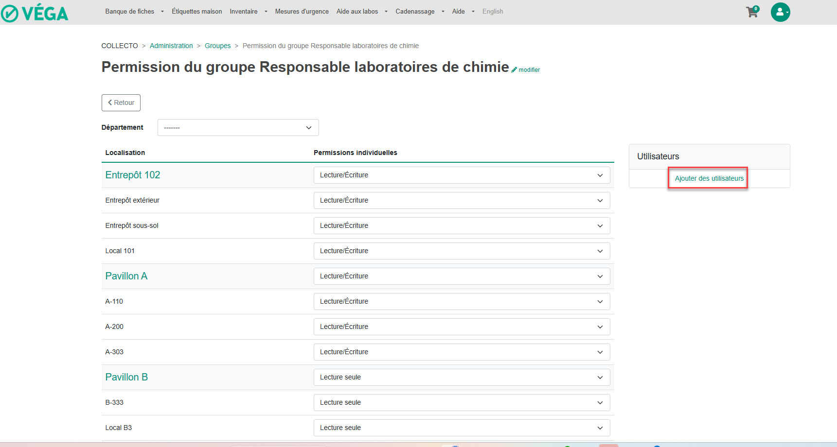 À partir de l’administration de Véga, il est possible de créer des groupes d’usagers. Ces groupes peuvent se voir attribuer des permissions spécifiques pour la gestion des inventaires, selon les bâtiments ou les locaux.