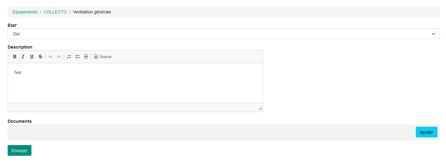Vous pourrez par la suite remplir vos informations sur cet équipement dans Véga !