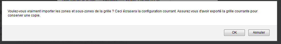 Cliquer sur Choisir un fichier et sélectionner le fichier CSV de la grille à importer. Cliquer ensuite sur [Importer]. Un message d’avertissement s'affichera. Il indiquera que la