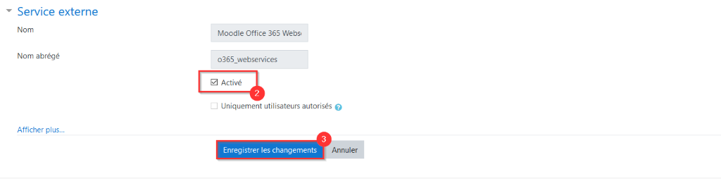 en cochant ensuite la case Activer (2) puis en cliquant sur Enregistrer les changements (3).
