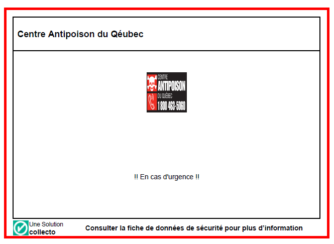 Vous pourrez ainsi ajouter du texte et sélectionner un type de pictogramme et le pictogramme désiré. Si vous voulez indiquer les coordonnées du Centre Antipoison du Québec, vous devez choisir Centre Antipoison dans les types de pictogrammes.