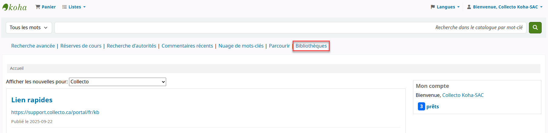 Dans cette capsule nous allons aborder les nouveautés et les améliorations de la version 24.11 et de la version 25.05 du logiciel Koha. Il résume les principaux changements du logiciel. Les nouveautés sont soit présentées brièvement avec une capture d’écran soit documentée dans un article à part. N’hésitez pas à cliquer sur les liens !