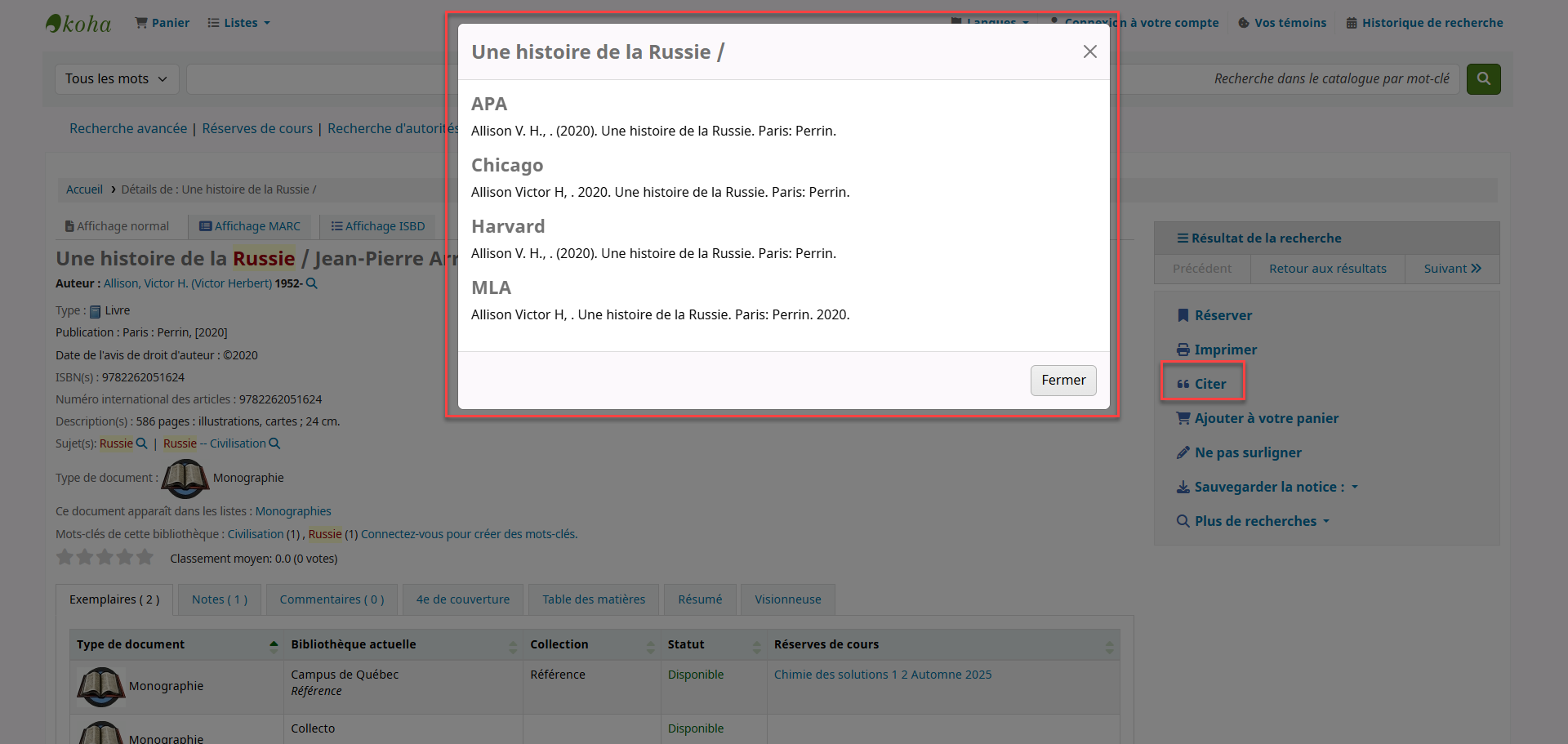 - Cette amélioration ajoute le champ « section de cours » au fil d'Ariane des réserves de cours. Il est ainsi plus facile de savoir où vous vous trouvez. https://bugs.koha-community.org/bugzilla3/show_bug.cgi?id=35978