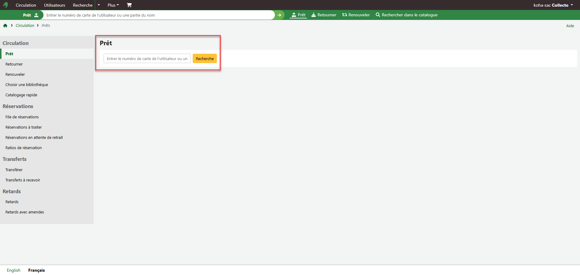 - Nouvelle boîte de recherche dans la page des prêts du module circulation. https://bugs.koha-community.org/bugzilla3/show_bug.cgi?id=39141