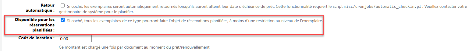 - Cette amélioration permet de configurer, au niveau du type de documents, si un exemplaire est réservable ou non. Ce paramètre peut être modifié au niveau du type de document. https://bugs.koha-community.org/bugzilla3/show_bug.cgi?id=35906