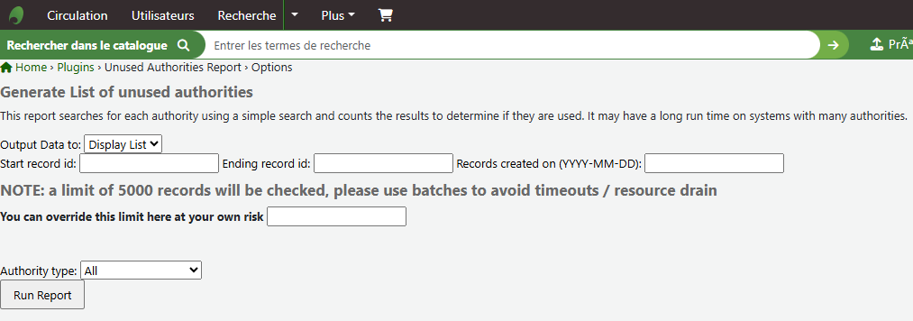Ne pas inscrire un intervalle de plus de 5000 notices pour éviter de surcharger le serveur.