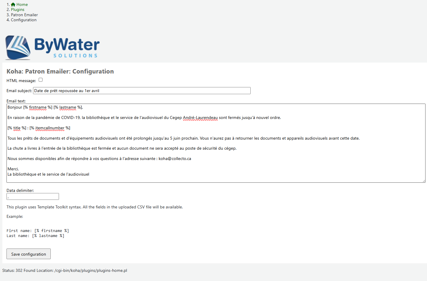 Autrement, il faut se rendre dans l'option Configurer du plugin.