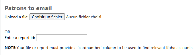 Pour générer la liste, il est possible de choisir le fichier CSV téléchargé à partir du rapport SQL ou en indiquant simplement le numéro du rapport SQL.
