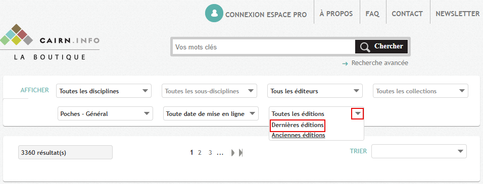 Nous vous conseillons de sélectionner le tri des dernières éditions afin de ne pas avoir de multiples notices pour le même titre, de différentes éditions.