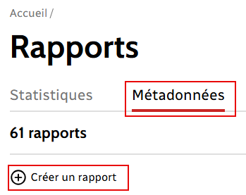 Cliquer sur [Métadonnées] et ensuite sur [Créer un rapport].