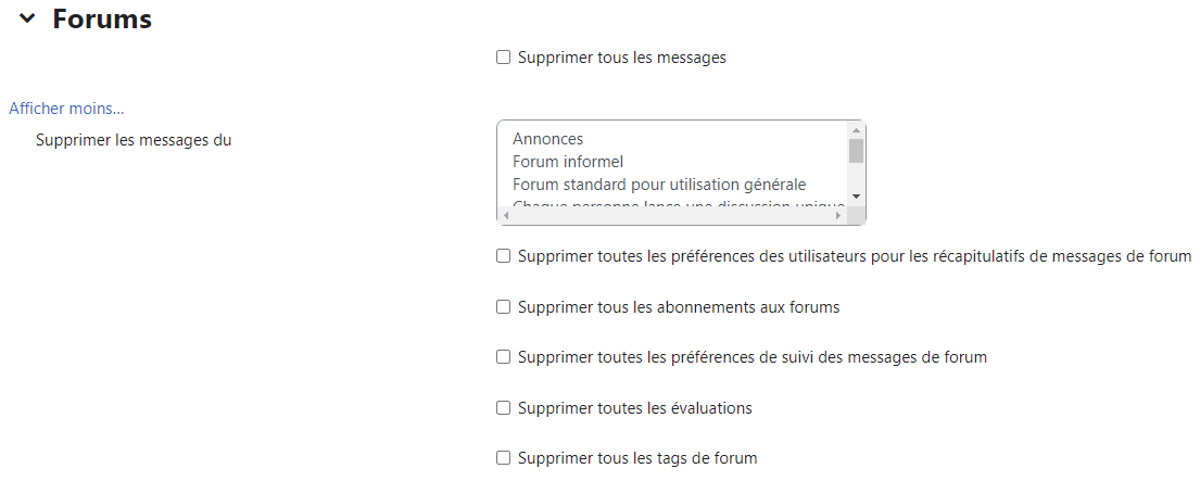 La réinitialisation permet de vider les données utilisateur d'un cours en conservant les activités.
