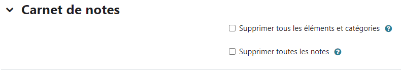 Ces options suppriment les éléments d'évaluation, les notes demeurent dans le compte de l'utilsateur