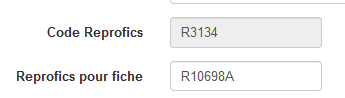 Vous faites l'inscription du code Reprofics R10698A dans le champ « Reprofics pour fiche ».